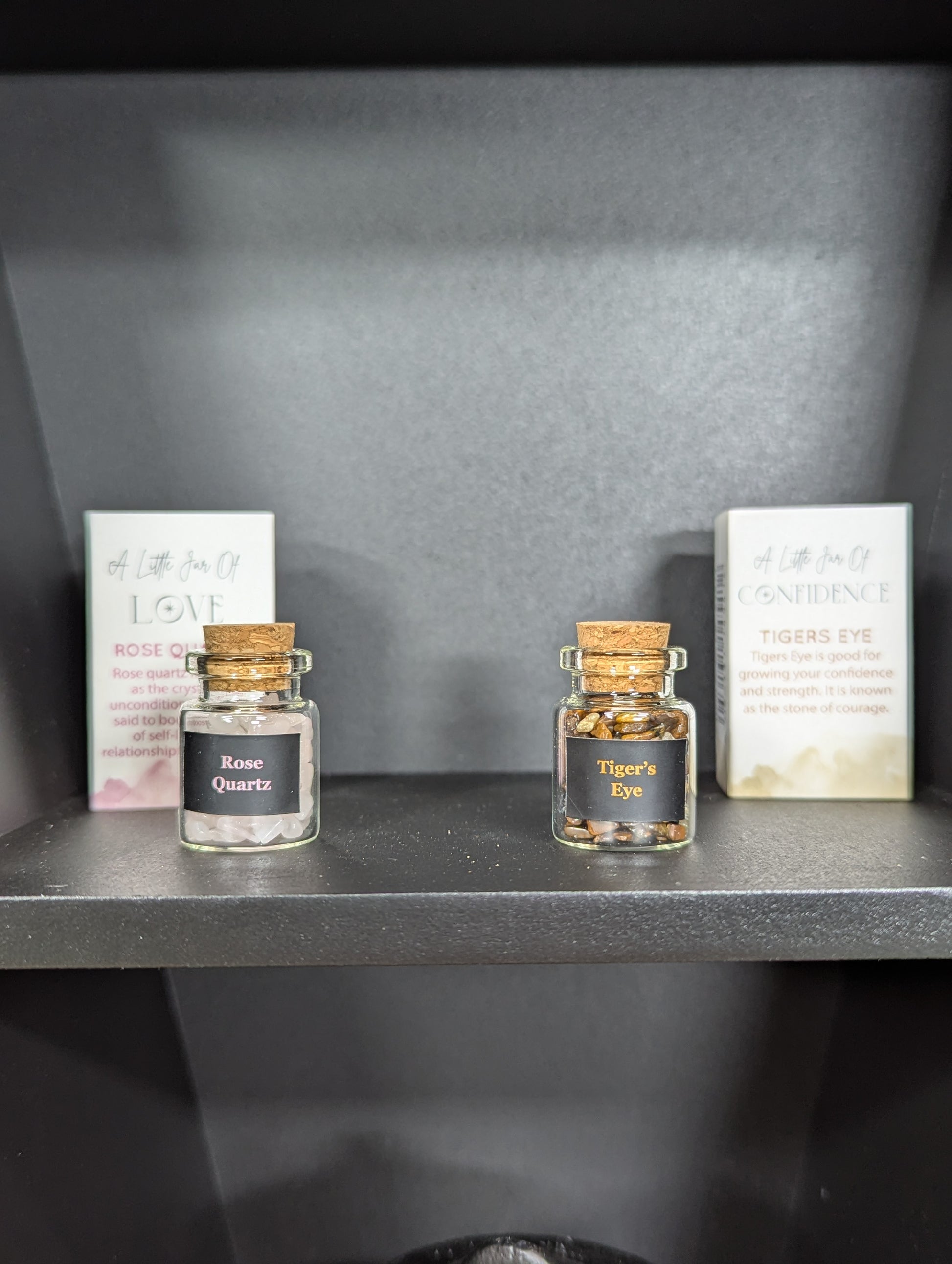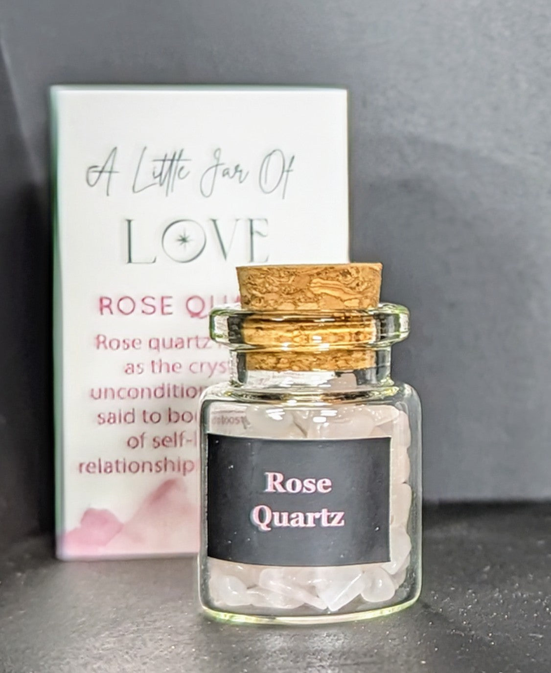 Show your love with the Jar of Love, a mini bottle filled with beautiful rose quartz crystals. Bring positive energy and a touch of romance to any space. Perfect for gifting to someone special.