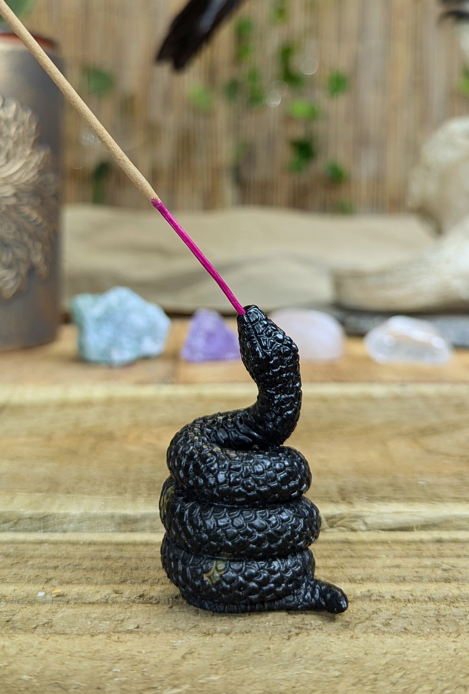 Bring your home to life with our Serpent Incense holder! This beautifully crafted holder adds a touch of elegance to any room while providing a functional way to burn your favorite incense. The intricate design of the serpent not only catches the eye, but also represents transformation and rebirth, making it a perfect addition to your self-care routine. Elevate your space and ignite your senses with our Serpent Incense holder.
