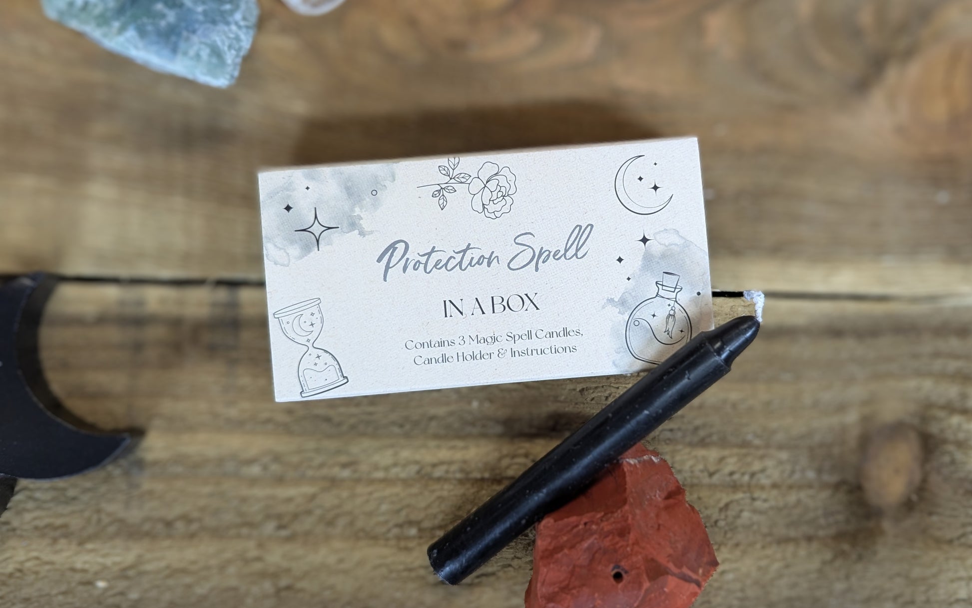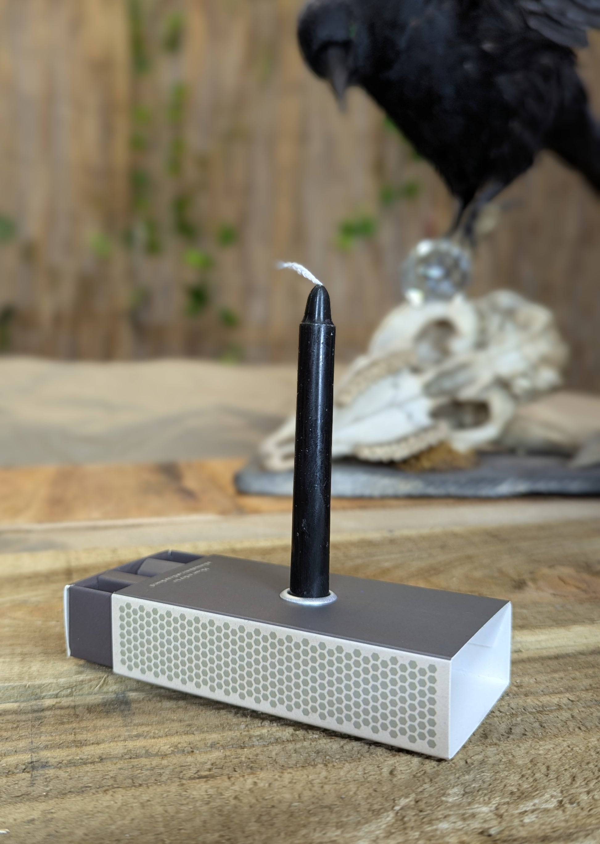 A "Spell in a Box" with a Black Candle is a thoughtfully prepared kit containing all the elements needed for a focused magical ritual. Centered around the power of the black candle, this spell box is perfect for banishing negativity, protection, or releasing unwanted energies.
